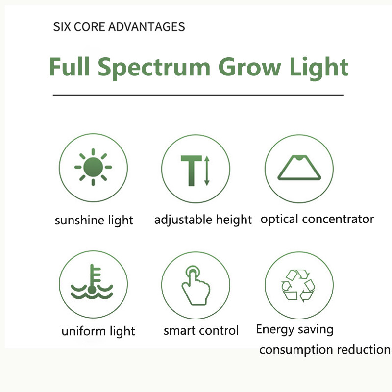 Indoor home office potted plants, such as green flowers and plants, fat-leafed succulents, scientific light source ratio, meet the light required by plants, produce chlorophyll under light to achieve plant photosynthesis, promote plant growth and flowering and prolong flowering.